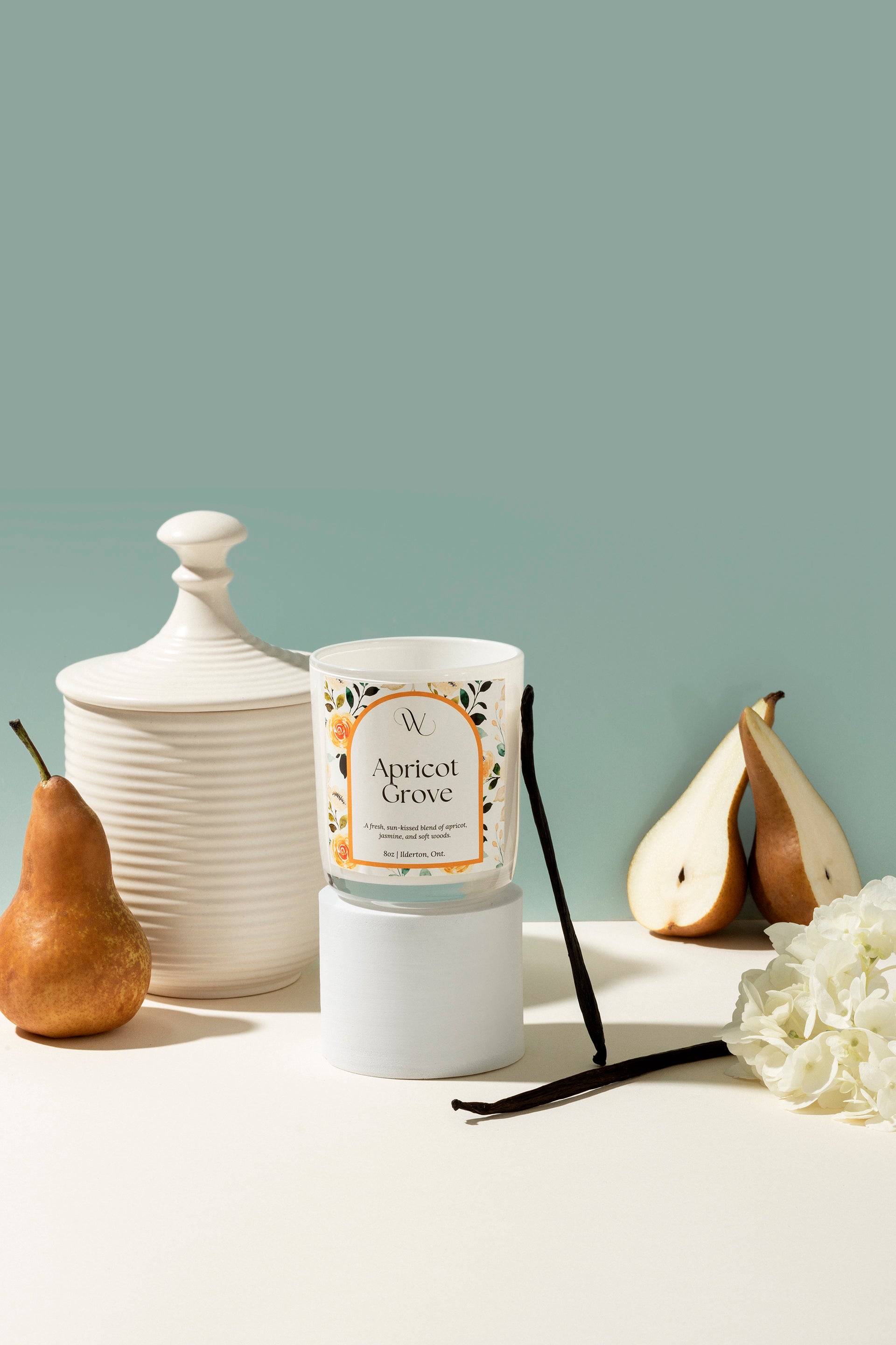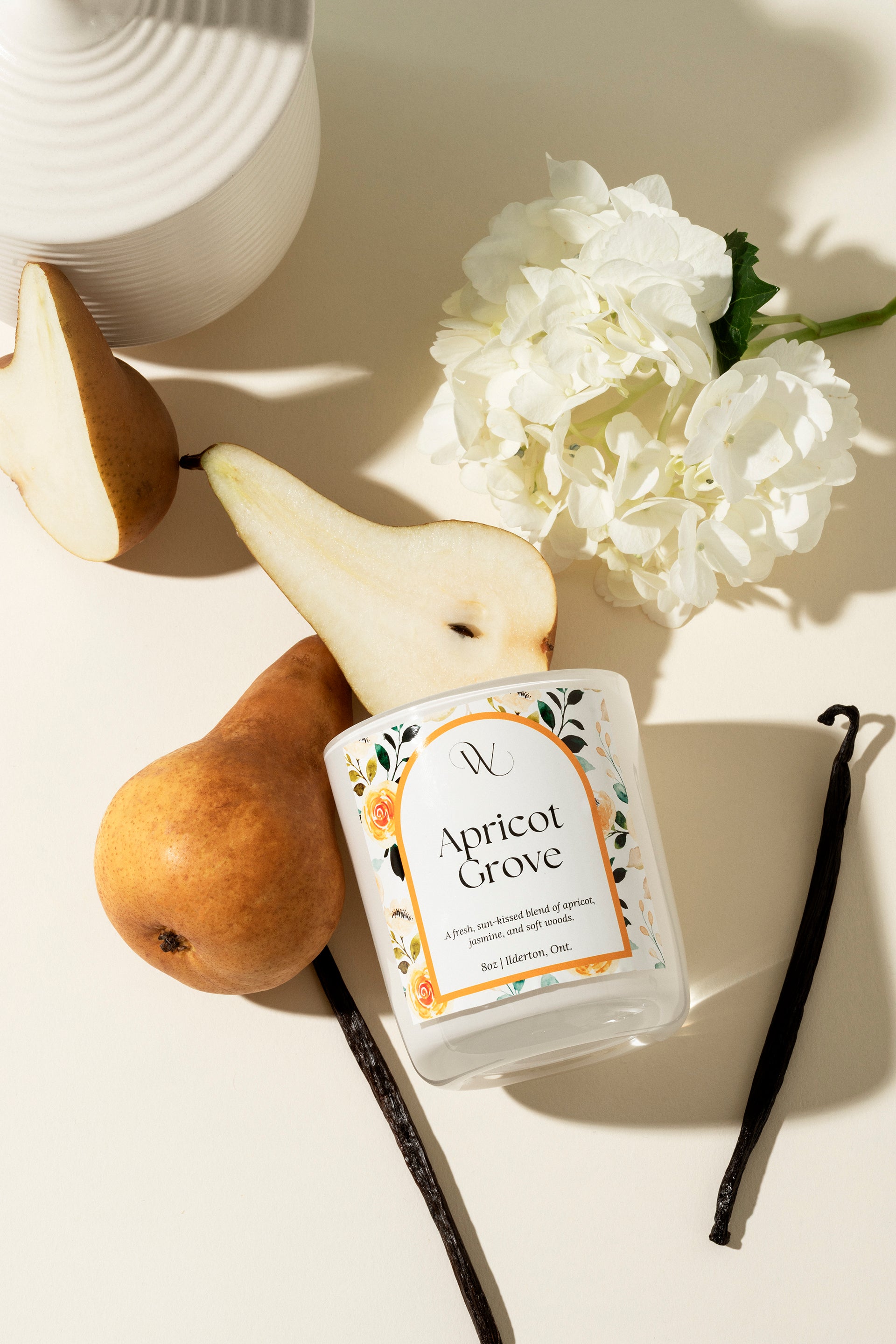 A refined yet inviting scent that captures the warmth of a sun-drenched orchard. Juicy pear leads into a lush heart of apricot, nectarine, and delicate jasmine, while a grounding base of vetiver, patchouli, and vanilla adds a touch of cozy elegance.