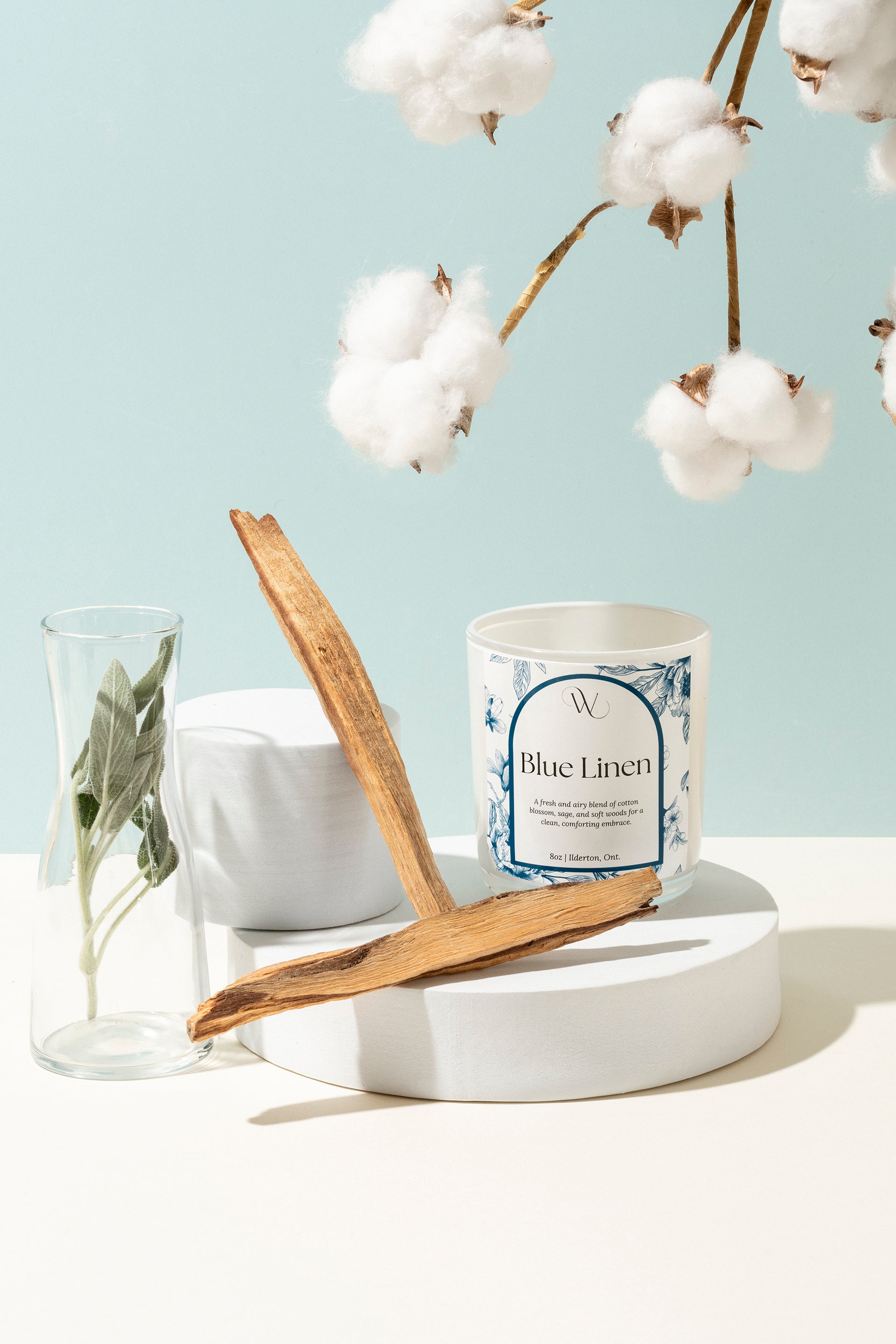 Wrap yourself in the soothing embrace of Blue Cotton, a fragrance that feels as soft and familiar as a cherished heirloom. Airy cotton blossom and earthy sage create a nostalgic opening, while aromatic lavender and patchouli add depth and warmth. A rich base of amber, cedar, and palo santo lingers with a quiet elegance, making this scent both grounding and timeless.